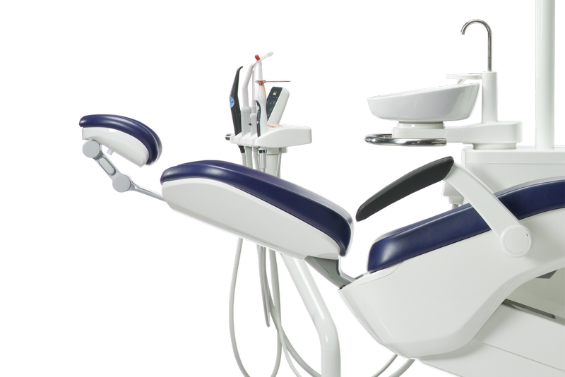 • С двумя основными педалями, позволяющими регулировать кресло пациента, управлять инструментами.