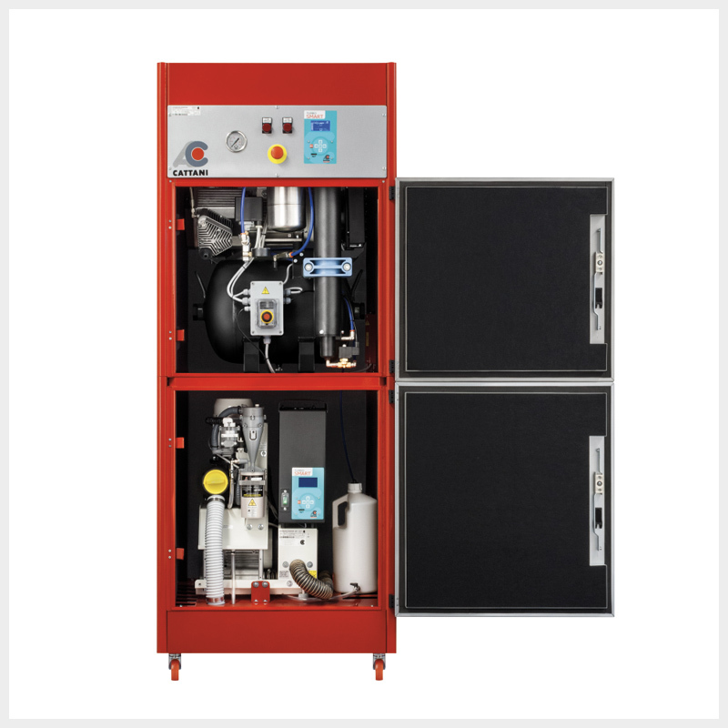 Block-Jet Silent 2 - вакуумный аспиратор Turbo-Smart В и компрессор на 3 установки с осушителем в едином звукоизолирующем корпусе (который возможно легко перемещать благодаря колесам).