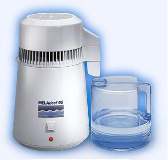 • Когда MELAdest 65 находится во включенном состоянии, температура воды повышается, легкие летучие газы испаряются  и выходят через вентиль в конденсаторной спирали . Вода нагревается до температуры 100?C, убивая бактерии, вирусы, и другие присутствующие микроорганизмы. Поскольку кипящая вода превращается в пар, она лишается  всех химикалий, солей, и других примесей. Пар проходит через конденсаторную спираль. Охлаждение пара превращает его в дистиллированную воду.