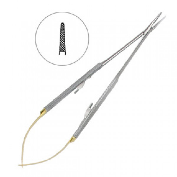 • Иглодержатель микрохирургический прямой Castroviejo-Gomel TC, 18 см, карбит вольфрамовые вставки (5-0, 6-0, 7-0)