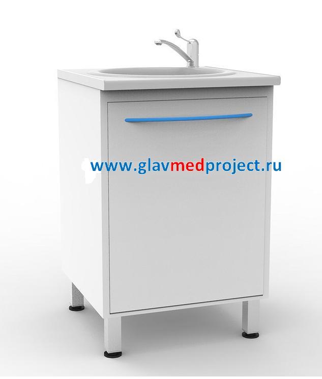 Модуль с мойкой из акрила, смесителем и корзиной для мусора.