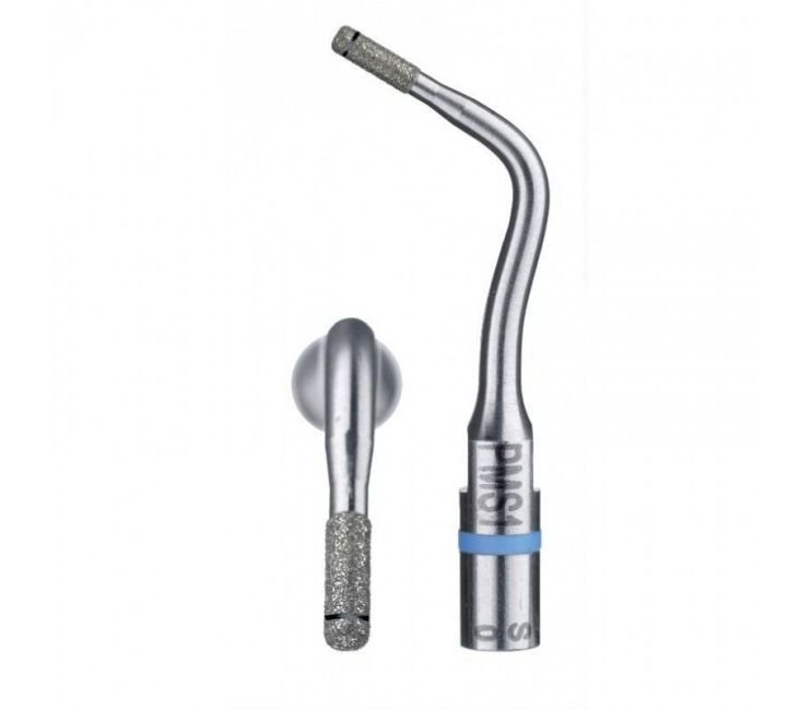 Насадка для скайлера PMS1, с алмазным покрытием, для препарирования уступа. Прямой плоский кончик. Первичная - после обработки бором. Ортопедия. Синяя полоса