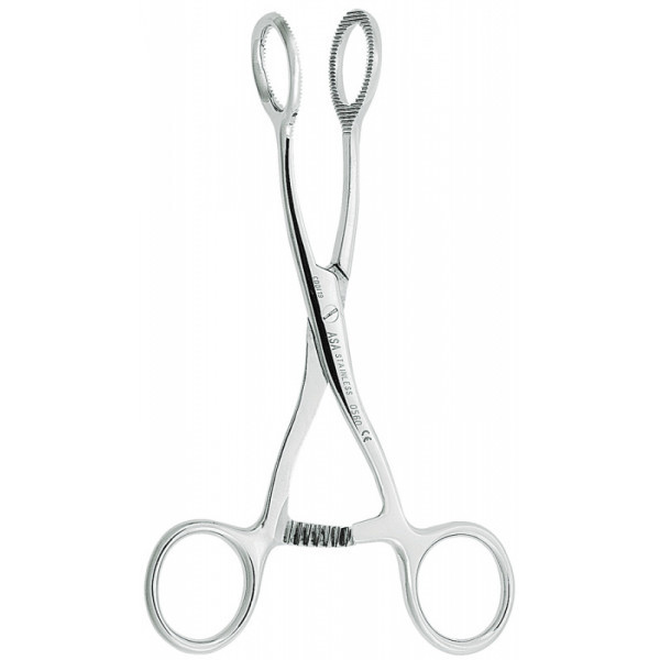 Пинцет для языка с круглой рабочей частью и фиксатором на ручке, изогнутый,17 см