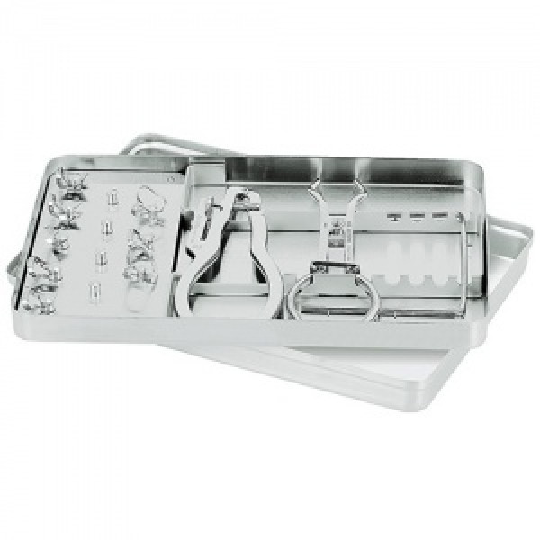 Поднос с инструментами "Раббер Дам", нержавеющая сталь (поднос, вкладка под крепления, вкладка под инструменты, 8 креплений, щипцы)