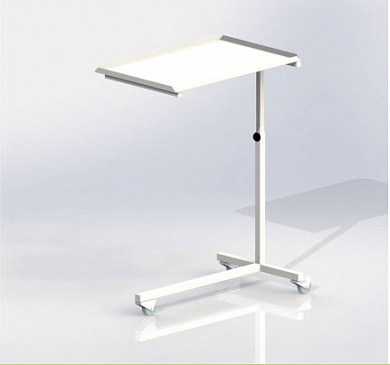 Столик изготовлен из металла, регулируемая по высоте столешница из металла с полимерно-порошковым покрытием, 3 колеса (2 с тормозом).