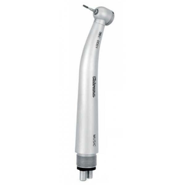 Турбинный наконечник с миниатюрной головкой с подсветкой, с кнопочным зажимом для боров и трехточечной системой охлаждения препарационного инструмента.
